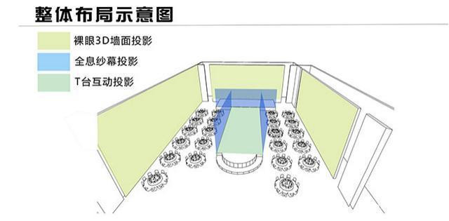 在宴會廳的實際應(yīng)用中,又分為720度和360度投影。多以宴會廳墻體作為投影載體,結(jié)合4D動畫使宴會廳空間呈現(xiàn)動態(tài)的3D立體效果。立體成像在全息宴會廳中具有可變化性,可以根據(jù)不同的需求來變化不同的場景。