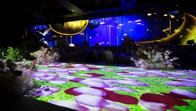 以喜宴為例,我們可以根據(jù)新人婚禮主題歐式、中式、森林式、海底婚禮、星空、等主題,為新人變換出不同的主題效果,而且減少宴會廳裝修翻新。