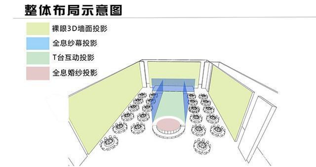 全息宴會廳是利用了全息投影技術(shù)打造的具有沉浸式舞美體驗效果的新型宴會廳,其主要以裸眼3D、舞臺全息、墻面(環(huán)幕)投影、地面互動投影和婚紗投影等幾個單元構(gòu)成。