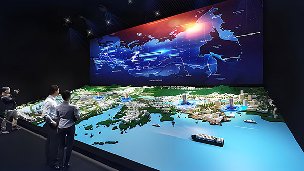 數(shù)字沙盤作為一種結(jié)合了傳統(tǒng)物理沙盤和現(xiàn)代數(shù)字技術(shù)的展示工具,以其直觀、互動(dòng)性強(qiáng)、信息量大等特點(diǎn),在展廳設(shè)計(jì)中得到了廣泛應(yīng)用。它不僅能夠以三維立體的形式展示地理環(huán)境、建筑布局等信息,還可以通過觸摸屏、虛擬現(xiàn)實(shí)(VR)、增強(qiáng)現(xiàn)實(shí)(AR)等技術(shù)實(shí)現(xiàn)用戶與內(nèi)容的實(shí)時(shí)互動(dòng)。
